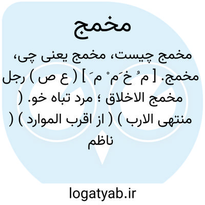 مخمج. [ م ُ خ َم ْ م َ ] ( ع ص ) رجل مخمج الاخلاق؛ مرد تباه خو. ( منتهی الارب ) ( از اقرب الموارد ) ( ناظم الاطباء ).