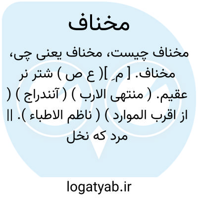 مخناف. [ م ِ ]( ع ص ) شتر نر عقیم. ( منتهی الارب ) ( آنندراج ) ( از اقرب الموارد ) ( ناظم الاطباء ). || مرد که نخل های گشن داده و کشت گشته دست وی خرمای نیکو و زراعت خوب نیارد. ( منتهی الارب ) ( آنندراج ) ( از اقرب الموارد ). مردی که دست پرورده وی از قبیل گشن دادن خرمابن و کشتن کشت و زراعت، بار و حاصل خوب نیاورد. ( ناظم الاطباء ).