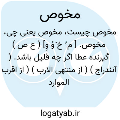 مخوص. [ م ُ خ َوْ وِ] ( ع ص ) گیرنده عطا اگر چه قلیل باشد. ( آنندراج ) ( از منتهی الارب ) ( از اقرب الموارد ).گیرنده عطیه اگر چه اندک باشد. ( ناظم الاطباء ). || پیری ظاهر شونده. ( ناظم الاطباء ) ( از منتهی الارب ) ( از اقرب الموارد ). || مکانی که در آن خوص ارطی و الاء و عرفج و سنط باشد. یقال: مکان مخوص و ارض مخوصة. ( از محیط المحیط ) ( از اقرب الموارد ). و رجوع به مخوصة شود.