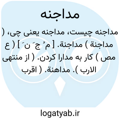 لغت نامه دهخدا ( مداجنة ) مداجنة. [ م ُ ج َ ن َ ] ( ع مص ) کار به مدارا کردن. ( از منتهی الارب ). مداهنة. ( اقرب الموارد ).