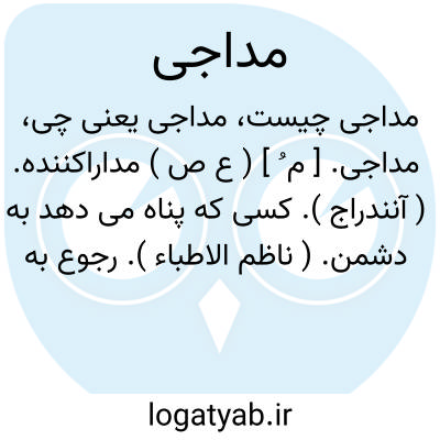 مداجی. [ م ُ ] ( ع ص ) مداراکننده. ( آنندراج ). کسی که پناه می دهد به دشمن. ( ناظم الاطباء ). رجوع به مداجاة شود.