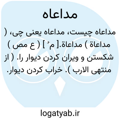 ( مداعاة ) مداعاة.[ م ُ ] ( ع مص ) شکستن و ویران کردن دیوار را. ( از منتهی الارب ). خراب کردن دیوار. ( از اقرب الموارد ). خانه یا دیوار را از اطراف ویران کردن. ( از متن اللغة ). || باهم چیستان گفتن. ( منتهی الارب ) ( ناظم الاطباء ). || با کسی برابر کردن و ستیزه کردن.( ناظم الاطباء ). محاجاة. ( متن اللغة ) ( اقرب الموارد ).