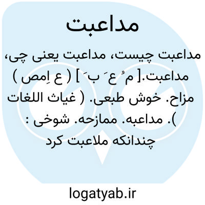 مداعبت.[ م ُ ع َ ب َ ] ( ع اِمص ) مزاح. خوش طبعی. ( غیاث اللغات ). مداعبه. ممازحه. شوخی: چندانکه ملاعبت کرد و بساط مداعبت گسترد جوابش نگفتم. ( گلستان سعدی ). || ( مص ) بازی کردن. ( غیاث اللغات ). مداعبة. رجوع به مداعبة شود.