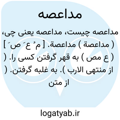 ( مداعصة ) مداعصة. [ م ُ ع َ ص َ ] ( ع مص ) به قهر گرفتن کسی را. ( از منتهی الارب ). به غلبه گرفتن. ( از متن اللغة ). گویند: اخذته مداعصة؛ ای مغارة. ( اقرب الموارد ). مغالبة و مغارة. ( از متن اللغة ).