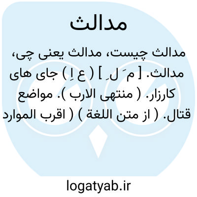 مدالث. [ م َ ل ِ ] ( ع اِ ) جای های کارزار. ( منتهی الارب ). مواضع قتال. ( از متن اللغة ) ( اقرب الموارد ). || مدالث الوادی؛ آب رورودها. ( منتهی الارب ). مدافع سیل در وادی. ( از اقرب الموارد ) ( از متن اللغة ).