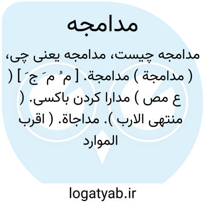( مدامجة ) مدامجة. [ م ُ م َ ج َ ] ( ع مص ) مدارا کردن باکسی. ( منتهی الارب ). مداجاة. ( اقرب الموارد ) ( تاج المصادر بیهقی ). موافقة. ( متن اللغة ). رجوع به دماج شود.
