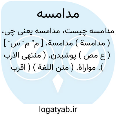 ( مدامسة ) مدامسة. [ م ُ م َ س َ ] ( ع مص ) پوشیدن. ( منتهی الارب ). مواراة. ( متن اللغة ) ( اقرب الموارد ).