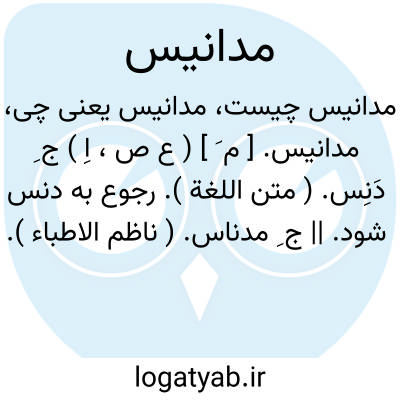 لغت نامه دهخدا مدانیس. [ م َ ] ( ع ص، اِ ) ج ِ دَنِس. ( متن اللغة ). رجوع به دنس شود. || ج ِ مدناس. ( ناظم الاطباء ).
