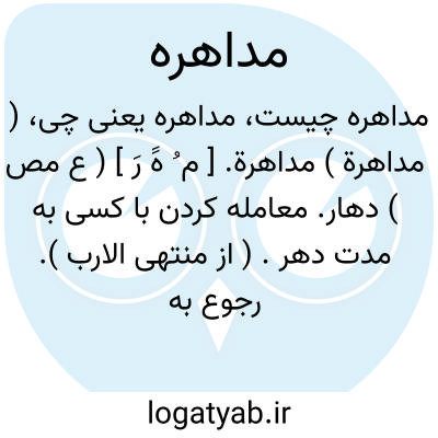 ( مداهرة ) مداهرة. [ م ُ هََ رَ ] ( ع مص ) دهار. معامله کردن با کسی به مدت دهر. ( از منتهی الارب ). رجوع به دهار شود.