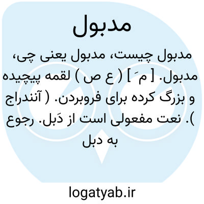مدبول. [ م َ ] ( ع ص ) لقمه پیچیده و بزرگ کرده برای فروبردن. ( آنندراج ). نعت مفعولی است از دَبل. رجوع به دبل شود. || پیراسته شده. ( آنندراج ) ( از ناظم الاطباء ). || کودداده شده بر سرگین. ( ناظم الاطباء ). رجوع به مدبولة شود.
