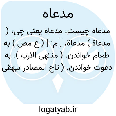 ( مدعاة ) مدعاة. [ م َ ] ( ع مص ) به طعام خواندن. ( منتهی الارب ). به دعوت خواندن. ( تاج المصادر بیهقی ). دعوت کردن از کسی به صرف غذا. ( از متن اللغة ) ( از اقرب الموارد ). دعوة. ( اقرب الموارد ). || ( اِ ) میهمانی. ( مهذب الاسماء ). دعوت به طعام و شراب. ( از متن اللغة ). ج، مداعی. || داعیة. ( اقرب الموارد ).
