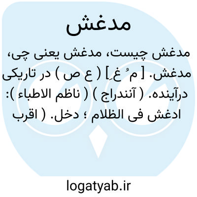 لغت نامه دهخدا مدغش. [ م ُ غ ِ] ( ع ص ) در تاریکی درآینده. ( آنندراج ) ( ناظم الاطباء ): ادغش فی الظلام؛ دخل. ( اقرب الموارد ) ( متن اللغة ).