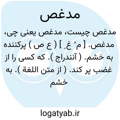 مدغص. [ م ُ غ ِ ] ( ع ص ) پرکننده به خشم. ( آنندراج ). که کسی را از غضب پر کند. ( از متن اللغة ). به خشم آورنده. || جنگ آور. مبارز. ( ناظم الاطباء ).