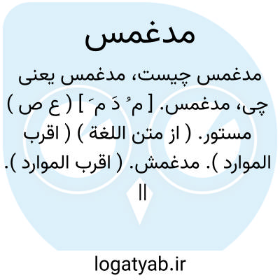 مدغمس. [ م ُ دَ م َ ] ( ع ص ) مستور. ( از متن اللغة ) ( اقرب الموارد ). مدغمش. ( اقرب الموارد ). || فاسد مدخول. حسب فاسد و ناخالص. ( از اقرب الموارد ) ( از متن اللغة ).
