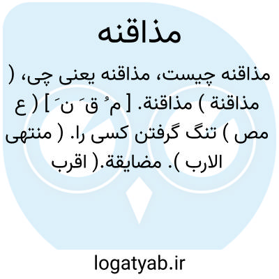 ( مذاقنة ) مذاقنة. [ م ُ ق َ ن َ ] ( ع مص ) تنگ گرفتن کسی را. ( منتهی الارب ). مضایقة.( اقرب الموارد ) ( متن اللغة ). ملازه. ( از متن اللغة ).