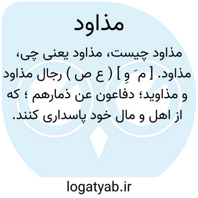 مذاود. [ م َ وِ ] ( ع ص ) رجال مذاود و مذاوید؛ دفاعون عن ذمارهم؛ که از اهل و مال خود پاسداری کنند. ( از اقرب الموارد ).