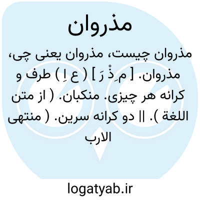 مذروان. [ م ِذْ رَ ] ( ع اِ ) طرف و کرانه هر چیزی. منکبان. ( از متن اللغة ). || دو کرانه سرین. ( منتهی الارب ) ( از اقرب الموارد ) ( از متن اللغة ). دو کناره الیة. ( از مهذب الاسماء ). || مذروان الرأس؛ دو جانب سر. ( منتهی الارب ). دو ناحیه سر. ( از اقرب الموارد ) ( از متن اللغة ). و هما قرناه. ( متن اللغة ). || مذروان القوس؛ سرهای کمان، آنجا که زه بر وی نشیند. ( منتهی الارب ) ( از اقرب الموارد ). هر دو طرف گوشه کمان. ( فرهنگ خطی ). || جاء فلان ینفض مذرویه؛ اذا جاء باغیا متهددا. ( منتهی الارب ) ( از اقرب الموارد )؛ آمد درحالتی که ستم کننده و ترساننده بود. ( ناظم الاطباء ).