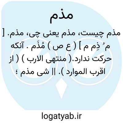مذم. [ م ِ ذَم م ] ( ع ص ) آنکه حرکت ندارد و جنبش نتواند. ( منتهی الارب ). مُذِم. رجوع به مذم شود.
