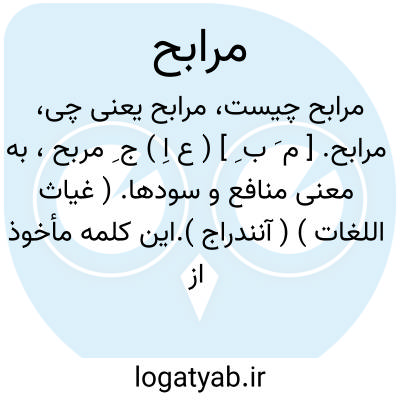 مرابح. [ م َ ب ِ ] ( ع اِ ) ج ِ مربح، به معنی منافع و سودها. ( غیاث اللغات ) ( آنندراج ).این کلمه مأخوذ از تازی است. ( از ناظم الاطباء ). مرابح و مربح در فرهنگهای عربی به دسترس ما دیده نشد.