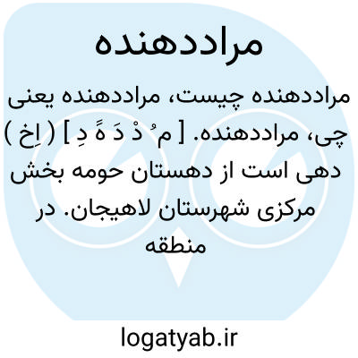 مراددهنده. [ م ُ دْ دَ هََ دِ ] ( اِخ ) دهی است از دهستان حومه بخش مرکزی شهرستان لاهیجان. در منطقه کوهستانی سردسیری واقع و دارای 253 تن سکنه است. آبش از چشمه تأمین می شود. و محصولش لبنیات، چای، زغال و شغل مردمش زراعت و گله داری است. یک بقعه از سادات کیا در این ده وجود دارد که زیارتگاه اهالی است. ( از فرهنگ جغرافیایی ایران ج 2 ).