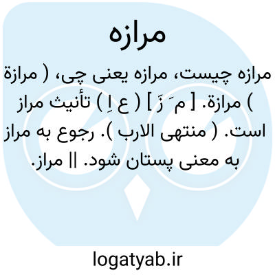 ( مرازة ) مرازة. [ م َ زَ ] ( ع اِ ) تأنیث مراز است. ( منتهی الارب ). رجوع به مراز به معنی پستان شود. || مراز. رجوع به مراز شود.