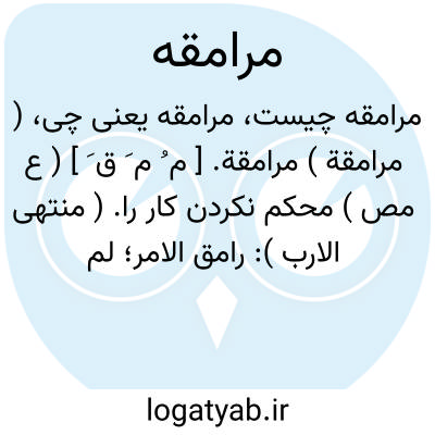 ( مرامقة ) مرامقة. [ م ُ م َ ق َ ] ( ع مص ) محکم نکردن کار را. ( منتهی الارب ): رامق الامر؛ لم یبرمه. ( اقرب الموارد ) ( متن اللغة ). || مداراکردن با کسی از بیم شر و گزند وی: رامق الرجل؛ داراه مخافة شره. ( از متن اللغة ) ( از اقرب الموارد ). دوروئی و نفاق کردن با کسی. ( از ناظم الاطباء ). با کسی دورویی و مدارا کردن. ( از تاج المصادر بیهقی ). || به نظر سخت و عداوت دیدن، یقال: رامقته؛ اذا نظرته شزراً نظر العداوة. ( از منتهی الارب ). به گوشه چشم و نه مستقیماً، یا به اعراض و غضب در کسی نگریستن: رامقه؛ نظر الیه شزراً. ( از متن اللغة ). || رمق مختصری از حیات داشتن. نه زنده و نه مرده بودن. گویند: هذه النخلة ترامق بعرق؛ نه می زید و نه می میرد. ( از اقرب الموارد ) ( از متن اللغة ) ( منتهی الارب ).