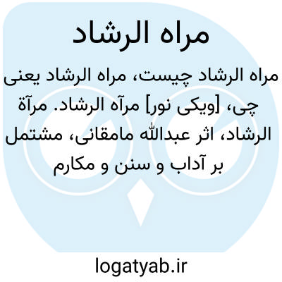 [ویکی نور] مرآه الرشاد. مرآة الرشاد، اثر عبدالله مامقانی، مشتمل بر آداب و سنن و مکارم اخلاقی، به زبان عربی است.