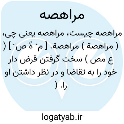( مراهصة ) مراهصة. [ م ُ هََ ص َ ] ( ع مص ) سخت گرفتن قرض دار خود را به تقاضا و در نظر داشتن او را. ( منتهی الارب ). مترصد و مراقب بدهکار بودن. ( از متن اللغة ). مراصد ومواظب غریم و بدهکار خود بودن. ( از اقرب الموارد ).
