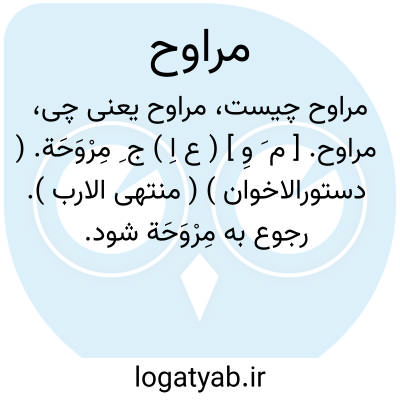 مراوح. [ م َ وِ ] ( ع اِ ) ج ِ مِرْوَحَة. ( دستورالاخوان ) ( منتهی الارب ). رجوع به مِرْوَحَة شود.