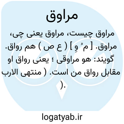 مراوق. [ م ُ وِ ] ( ع ص ) هم رواق. گویند: هو مراوقی؛ یعنی رواق او مقابل رواق من است. ( منتهی الارب ). نعت است از مراوقة. رجوع به مراوقة شود.