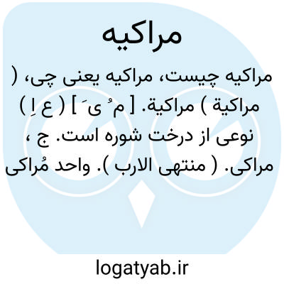 ( مراکیة ) مراکیة. [ م ُ ی َ ] ( ع اِ ) نوعی از درخت شوره است. ج، مراکی. ( منتهی الارب ). واحد مُراکی است به معنی درخت حمض که شتر آن را بچرد. ( از منتهی الارب ). مراکیة؛ شجرة من الحمض. ج، مَراک. ( اقرب الموارد ).