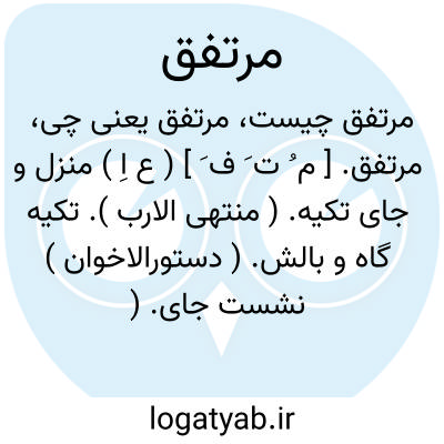 مرتفق. [ م ُ ت َ ف َ ] ( ع اِ ) منزل و جای تکیه. ( منتهی الارب ). تکیه گاه و بالش. ( دستورالاخوان ) نشست جای. ( مهذب الاسماء ). متکا. ( یادداشت مرحوم دهخدا ). مخده. آنچه بدان تکیه زنند. || ( ص ) نعت مفعولی است از ارتفاق. رجوع به ارتفاق شود.