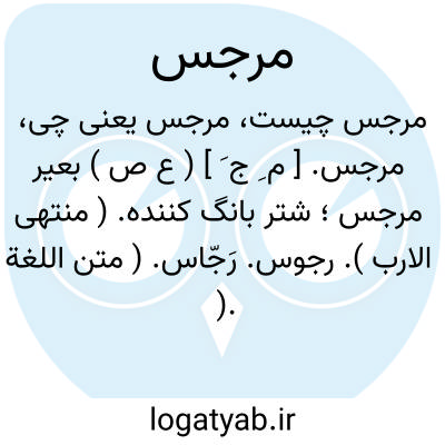 مرجس. [ م ِ ج َ ] ( ع ص ) بعیر مرجس؛ شتر بانگ کننده. ( منتهی الارب ). رجوس. رَجّاس. ( متن اللغة ).