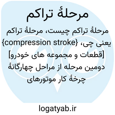 {compression stroke} [قطعات و مجموعه های خودرو] دومین مرحله از مراحل چهارگانۀ چرخۀ کار موتورهای درون سوز چهارزمانه که در آن مخلوط سوخت و هوا در داخل سیلندر متراکم می شود