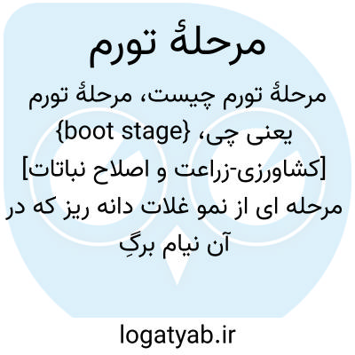 {boot stage} [کشاورزی-زراعت و اصلاح نباتات] مرحله ای از نمو غلات دانه ریز که در آن نیام برگِ پرچم به دلیل شکل گرفتن خوشه یا سنبله متورم می شود
