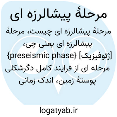 فرهنگستان زبان و ادب {preseismic phase} [ژئوفیزیک] مرحله ای از فرایند کامل دگرشکلی پوستۀ زمین، اندک زمانی پیش از وقوع زمین لرزۀ اصلی