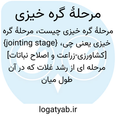 {jointing stage} [کشاورزی-زراعت و اصلاح نباتات] مرحله ای از رشد غلات که در آن طول میان گره های ساقه افزایش می یابد