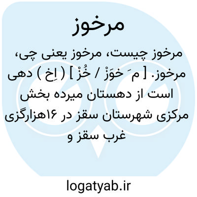 مرخوز. [ م َ خوَزْ / خُزْ ] ( اِخ ) دهی است از دهستان میرده بخش مرکزی شهرستان سقز در 16هزارگزی غرب سقز و 12هزارگزی جنوب غربی راه سقز به میاندوآب، در منطقه کوهستانی سردسیر واقع و دارای 900 تن سکنه است. آبش از چشمه و محصولش غلات، لبنیات، توتون شغل مردمش زراعت و گله داری است. ( از فرهنگ جغرافیایی ایران ج 5 ).