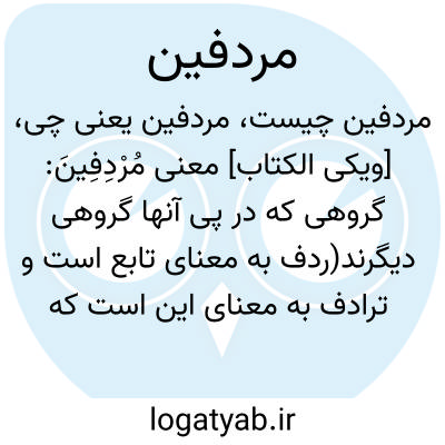 [ویکی الکتاب] معنی مُرْدِفِینَ: گروهی که در پی آنها گروهی دیگرند(ردف به معنای تابع است و ترادف به معنای این است که دو چیز و یا دو کس یکدیگر را تعقیب کنند، و رادف به معنای متاخر است (آن کس که عقب تر است)، و مردف آن کس است که جلو سوار شده و کسی را پشت سر خود سوار کند.منظور از نزول...