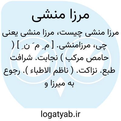 لغت نامه دهخدا مرزامنشی. [ م ِ م َ ن ِ ] ( حامص مرکب ) نجابت. شرافت طبع. نزاکت. ( ناظم الاطباء ). رجوع به میرزا و میرزامنشی شود.