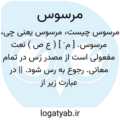 مرسوس. [ م َ ] ( ع ص ) نعت مفعولی است از مصدر رَس در تمام معانی. رجوع به رس شود. || در عبارت زیر از ذخیره خوارزمشاهی مرسوس را مرحوم دهخدا با علامت سؤال و تردید به معنی دیوانه نوشته است. و نیز شاید بتوان آن را به معنی شخص تب دار دانست به اعتبار یکی از معانی رَس که آغاز ظهور تب است: طعام را بگوارد و مصروع ومعتوه و مرسوس را سود دارد. ( ذخیره خوارزمشاهی ).