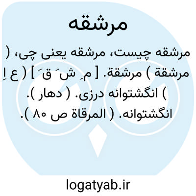 ( مرشقة ) مرشقة. [ م ِ ش َ ق َ ] ( ع اِ ) انگشتوانه درزی. ( دهار ). انگشتوانه. ( المرقاة ص 80 ).