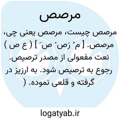 مرصص. [ م ُ رَص ْ ص َ ] ( ع ص ) نعت مفعولی از مصدر ترصیص. رجوع به ترصیص شود. به ارزیز در گرفته و قلعی نموده. ( منتهی الارب ) ( از اقرب الموارد ). مطلی به رصاص.