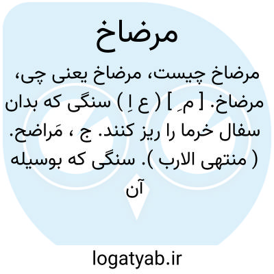 مرضاخ. [ م ِ ] ( ع اِ ) سنگی که بدان سفال خرما را ریز کنند. ج، مَراضح. ( منتهی الارب ). سنگی که بوسیله آن یا بر آن هسته را بشکنند. ( از اقرب الموارد ). مرضخة. ( آنندراج ). ج، مَراضیخ. ( اقرب الموارد ) ( آنندراج ). مرضاخ. رجوع به مرضاخ شود.