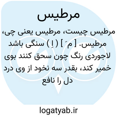 مرطیس. [ م َ ] ( اِ ) سنگی باشد لاجوردی رنگ چون سحق کنند بوی خمیر کند، بقدر سه نخود از وی درد دل را نافع باشد. ( برهان )( آنندراج ). یک نوع سنگ دوائی کبود. ( ناظم الاطباء ).