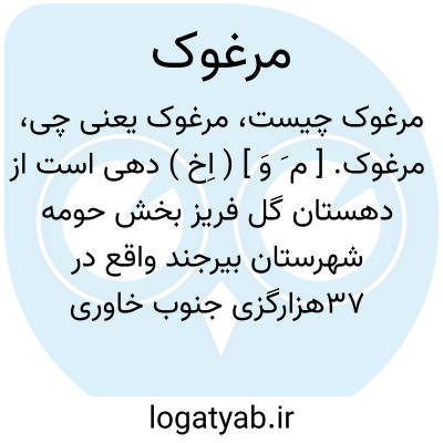 مرغوک. [ م َ وَ ] ( اِخ ) دهی است از دهستان گل فریز بخش حومه شهرستان بیرجند واقع در 37هزارگزی جنوب خاوری بیرجند و 2 هزارگزی شمال گل فریز. آب آن از قنات و راه آن مالرو است. ( از فرهنگ جغرافیائی ایران ج 9 ).
