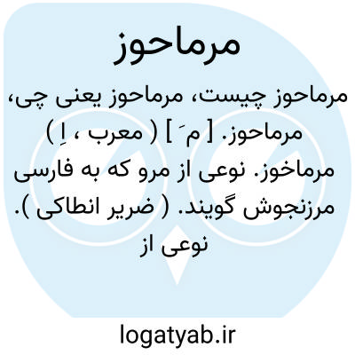 مرماحوز. [ م َ ] ( معرب، اِ ) مرماخوز. نوعی از مرو که به فارسی مرزنجوش گویند. ( ضریر انطاکی ). نوعی از مرو. ( بحر الجواهر ). نوعی از مرو است، به پارسی مرو خشک خوانند و نیکوترین آن بستانی بود. ( از مفردات ابن البیطار ). جنسی از حی العالم. ( مفاتیح العلوم ). مرماهان. نوعی از برسفانج. مروماحوزی. خرنباش. مرماحوز، و آن گیاهی باشد چون مرو با برگهای خرد و گل سفید و بوی خوش. ( یادداشت مرحوم دهخدا ).
