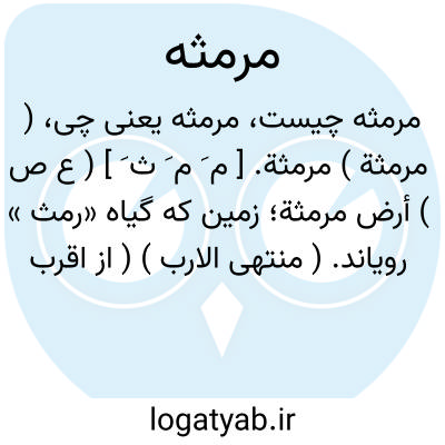 لغت نامه دهخدا ( مرمثة ) مرمثة. [ م َ م َ ث َ ] ( ع ص ) أرض مرمثة؛ زمین که گیاه «رمث » رویاند. ( منتهی الارب ) ( از اقرب الموارد ). و رجوع به رمث شود.