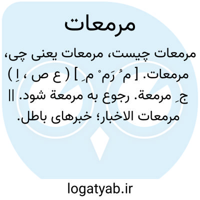 مرمعات. [ م ُ رَم ْ م ِ ] ( ع ص، اِ ) ج ِ مرمعة. رجوع به مرمعة شود. || مرمعات الاخبار؛ خبرهای باطل. أتی فلان بمرمعات الاخبار؛ یعنی باطل. ( از منتهی الارب ) ( از اقرب الموارد ).