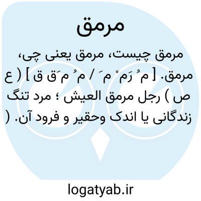 لغت نامه دهخدا مرمق. [ م ُ رَم ْ م َ / م ُ م َق ق ] ( ع ص ) رجل مرمق العیش؛ مرد تنگ زندگانی یا اندک وحقیر و فرود آن. ( منتهی الارب ) ( از اقرب الموارد ).